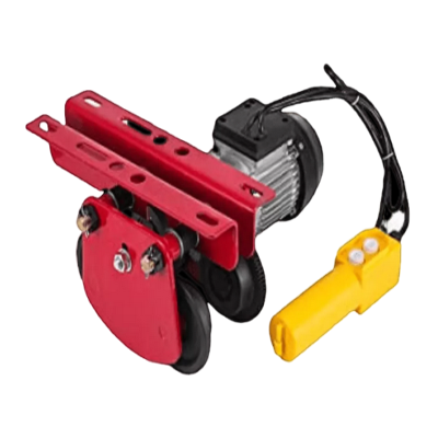 ترولی برقی: این دستگاه به ترولی مجهز است که روی ریل یا تیرآهن نصب میشود و امکان جابهجایی افقی بار را فراهم میکند.