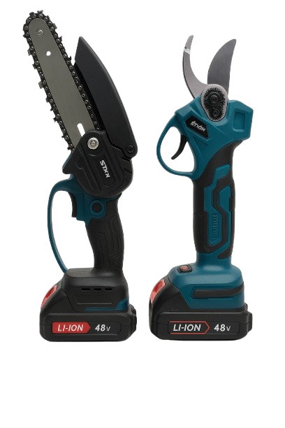 ست اره زنجیری شارژی دستی و قیچی باغبانی شارژی 48ولت لیتیوم یون